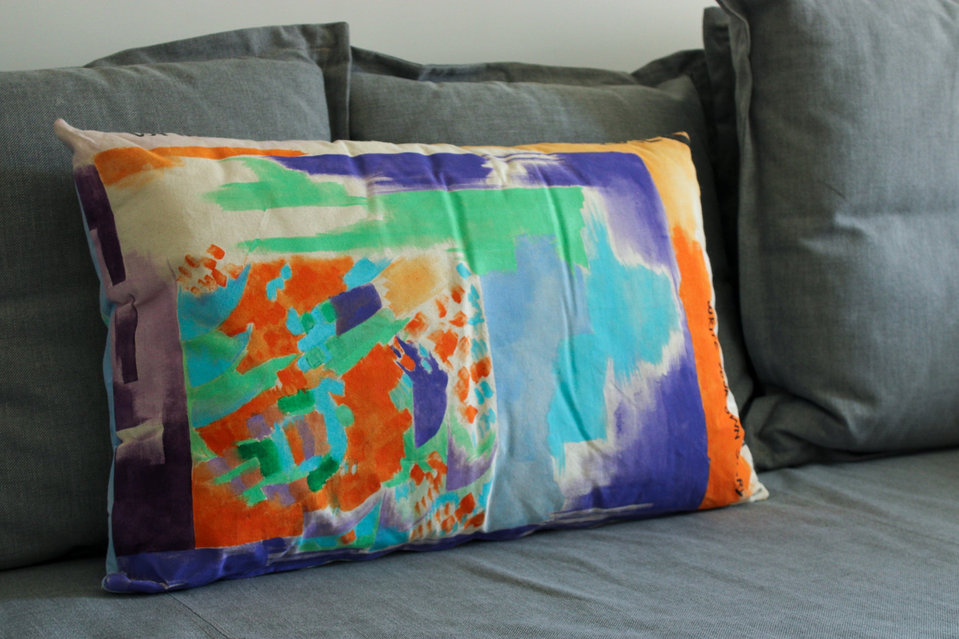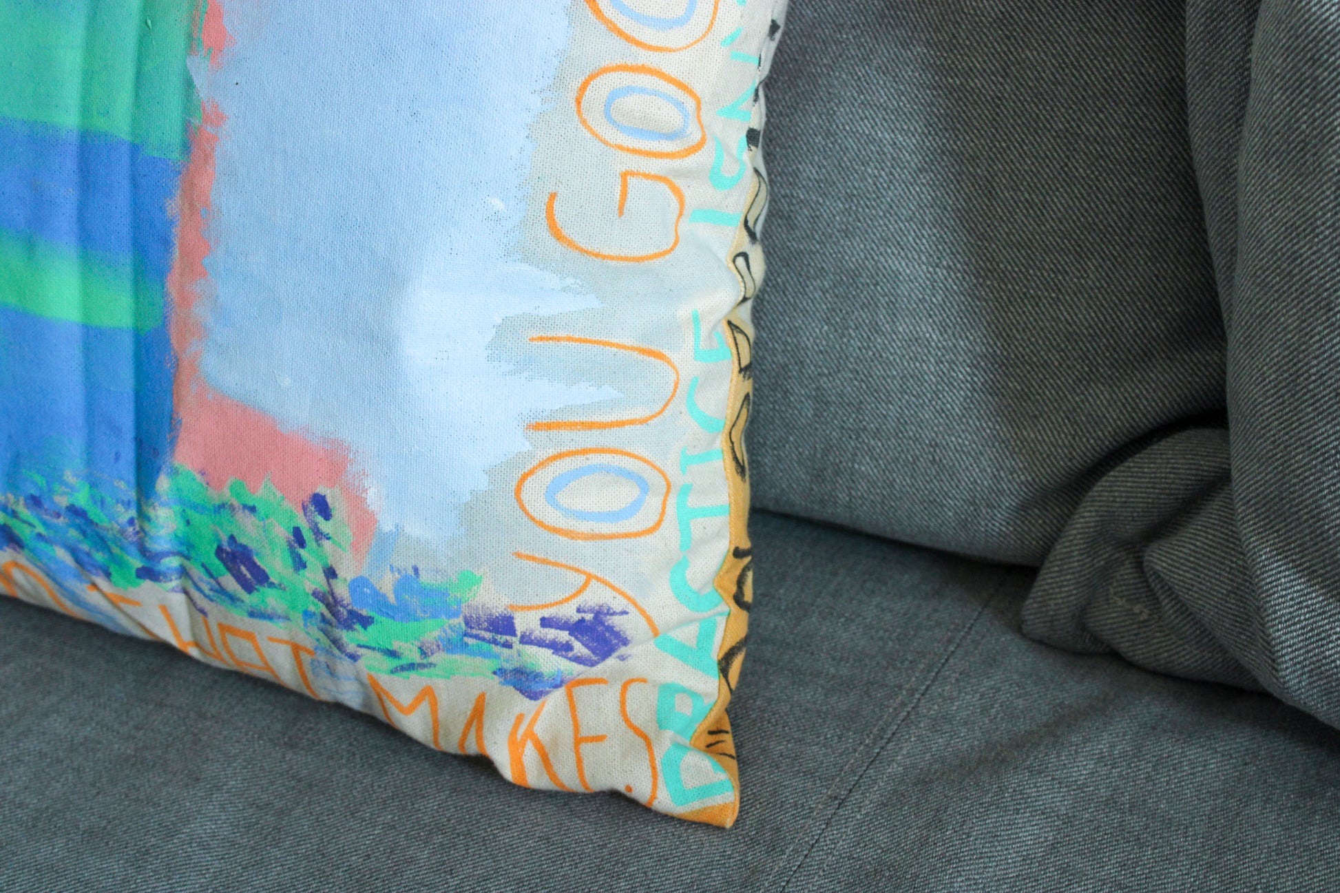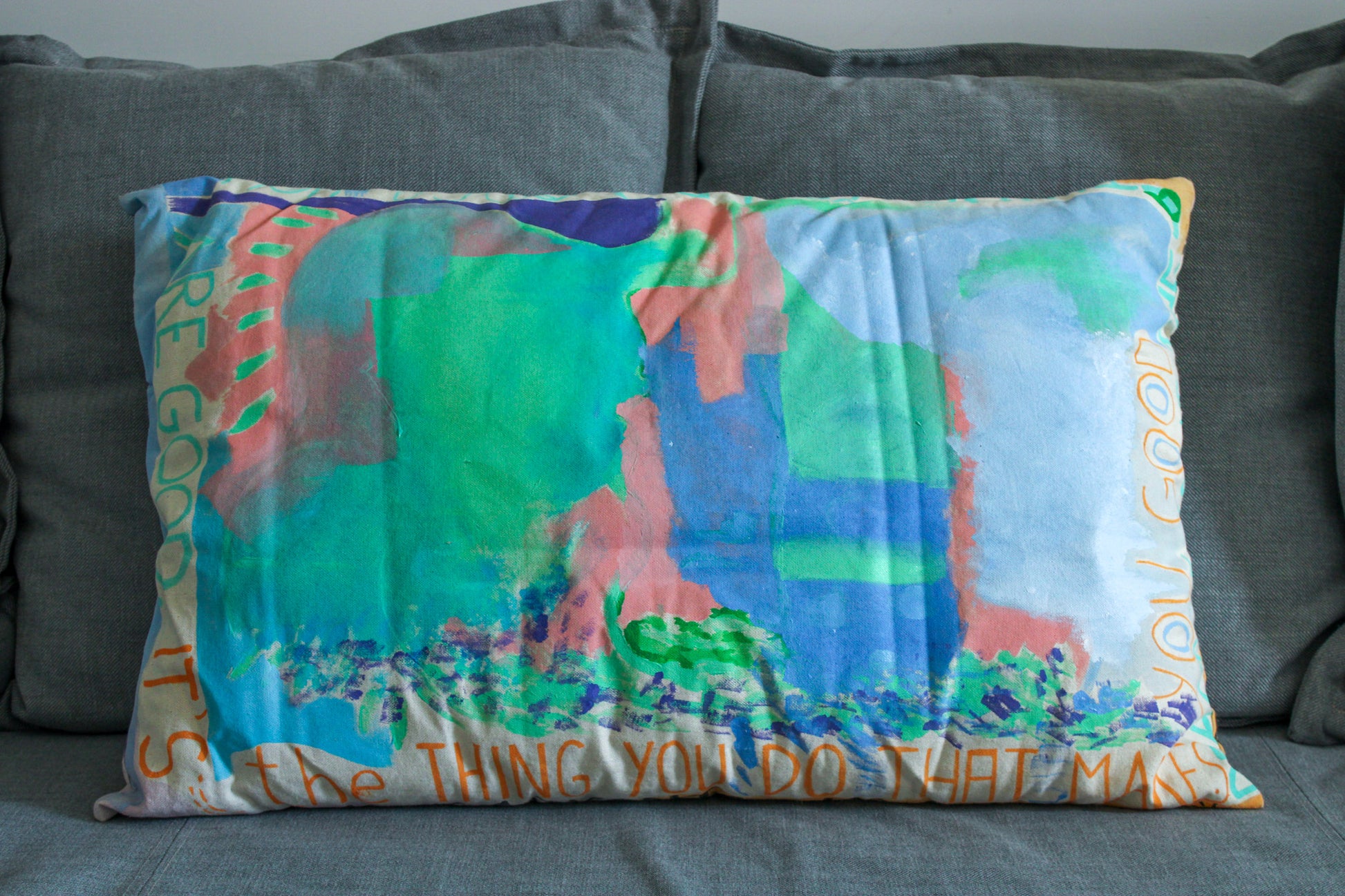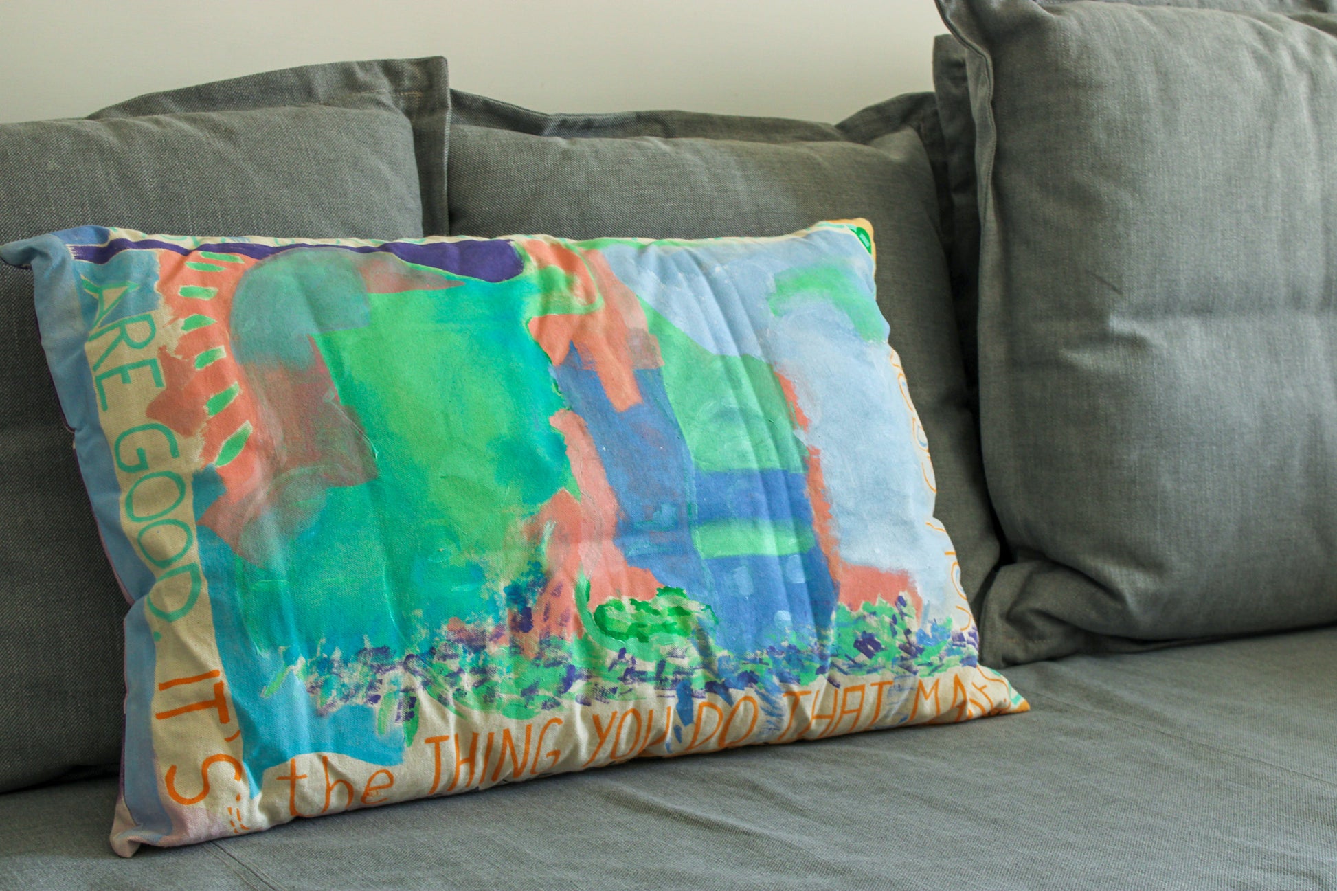 Cuscino dipinto a mano, con colori acrilici e colori per tessuto